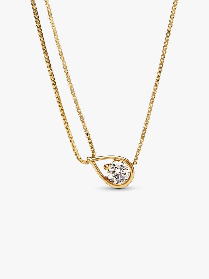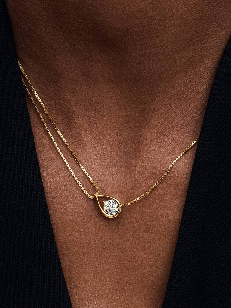 ce. Our fluid infinity design symbolizes infinite joy, optimism and strength. The round brilliant excellent cut lab-grown diamond is suspended from a refined box chain in 14k gold, which doubles up on one side to add a modern twist to the design. The double chain leads to a sliding ball closure, allowing you to adjust the length of the necklace so it shines on any neckline. brand Infinite lab-grown diamonds at and above 0.50 carat are certified by IGI. Each brand Lab-grown diamond is treated with a post-growth color enhancement called annealing.