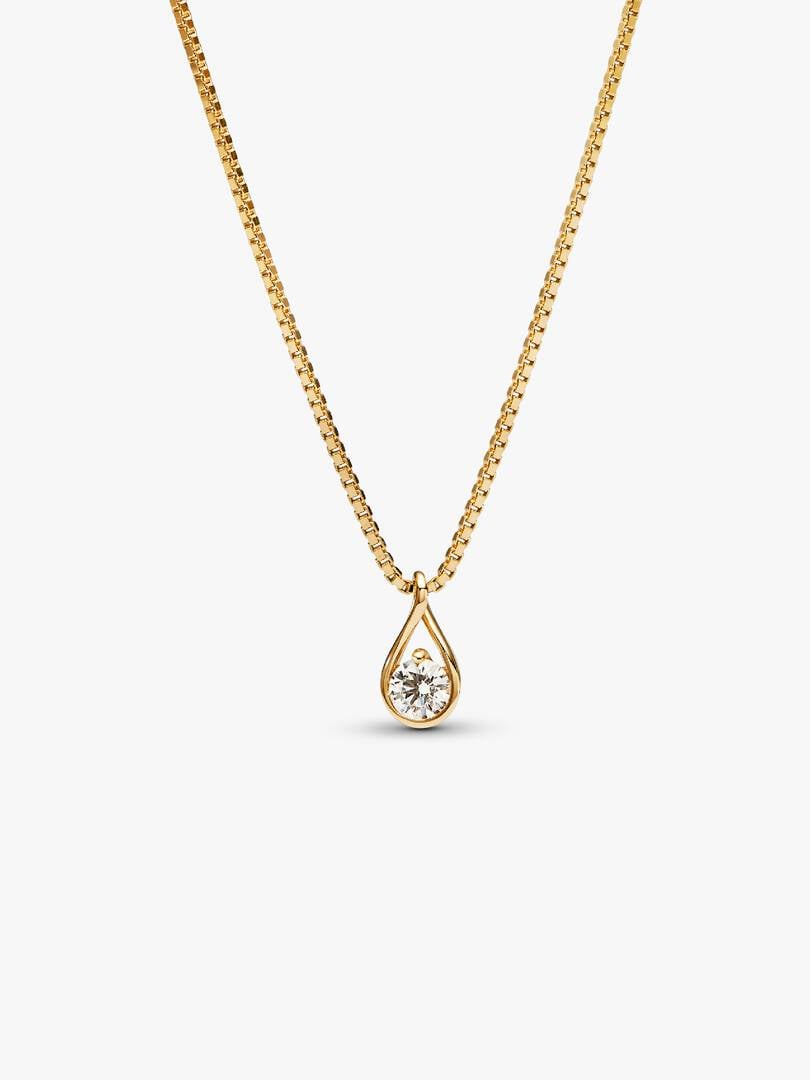 This 14k gold pendant is hand-set with a radiant 0.25 carat lab-grown diamond on a matching 14k gold box chain necklace. A powerful reminder of all we are, all we can be and the infinite possibility the future holds, thi