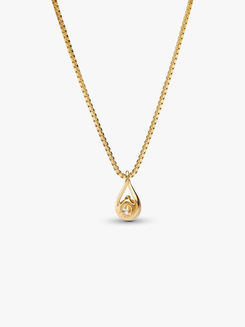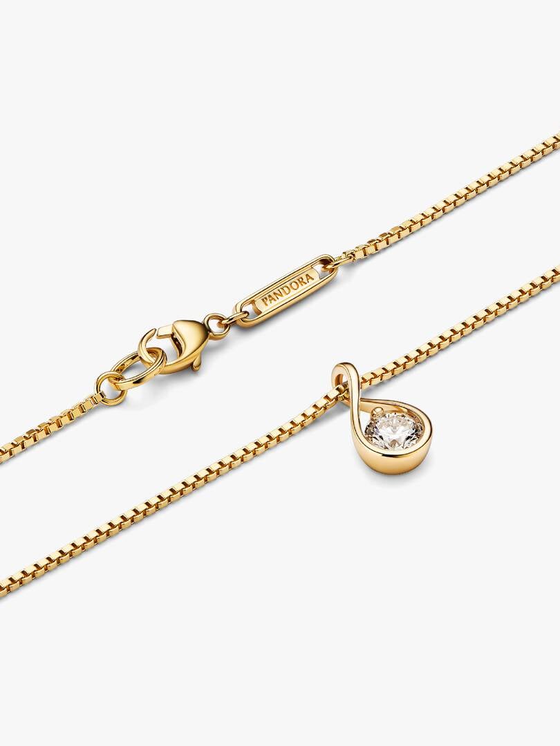 s pendant features a round brilliant excellent cut lab-grown diamond in a modern infinity setting that flows around the stone and suspends it in mid-air. An elevated piece that will shine on any neckline. Each brand Lab-grown diamond is treated with a post-growth color enhancement called annealing.