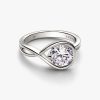 A solid 14k white gold ring hand-set with a 1.75 carat lab-grown diamond. A beautiful statement of empowerment, or an eloquent declaration of love. A modern infinity setting flows seamlessly around the round brilliant ex