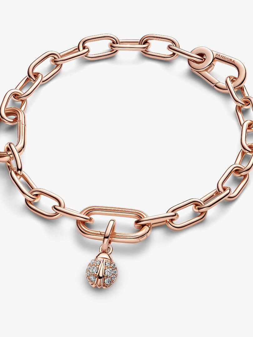 Keep luck on your side when you wear the brand ME Lucky Ladybird Mini Dangle Charm. This 14k rose gold-plated mini dangle charm is shaped like a ladybird with wings slightly open and studded with round sparkling stones