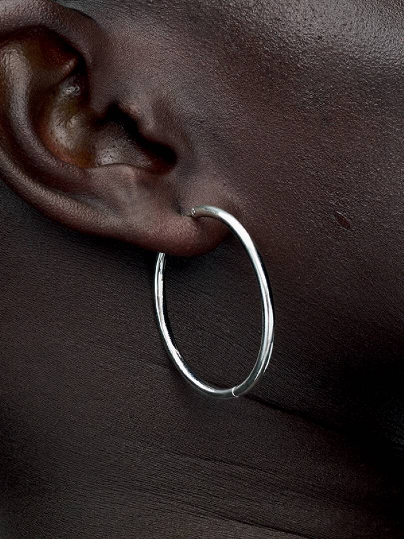Personalize a style essential with the brand Moments 40 mm Charm Hoop Earrings. Crafted of sterling silver, these earrings feature a rounded profile and our iconic brand logo on the hoops’ interior. Designed to be pe