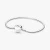 Express your love with the brand Moments Engravable Heart Clasp Snake Chain Bracelet. Hand-finished in sterling silver with threaded ends to keep charms safely secured, this is the first brand Moments bracelet to fea
