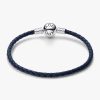 Channel the depths of the ocean and the calm of a midnight sky. The brand Moments Round Clasp Blue Braided Leather Bracelet is crafted from deep blue braided leather and finished with a round sterling silver clasp and