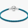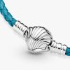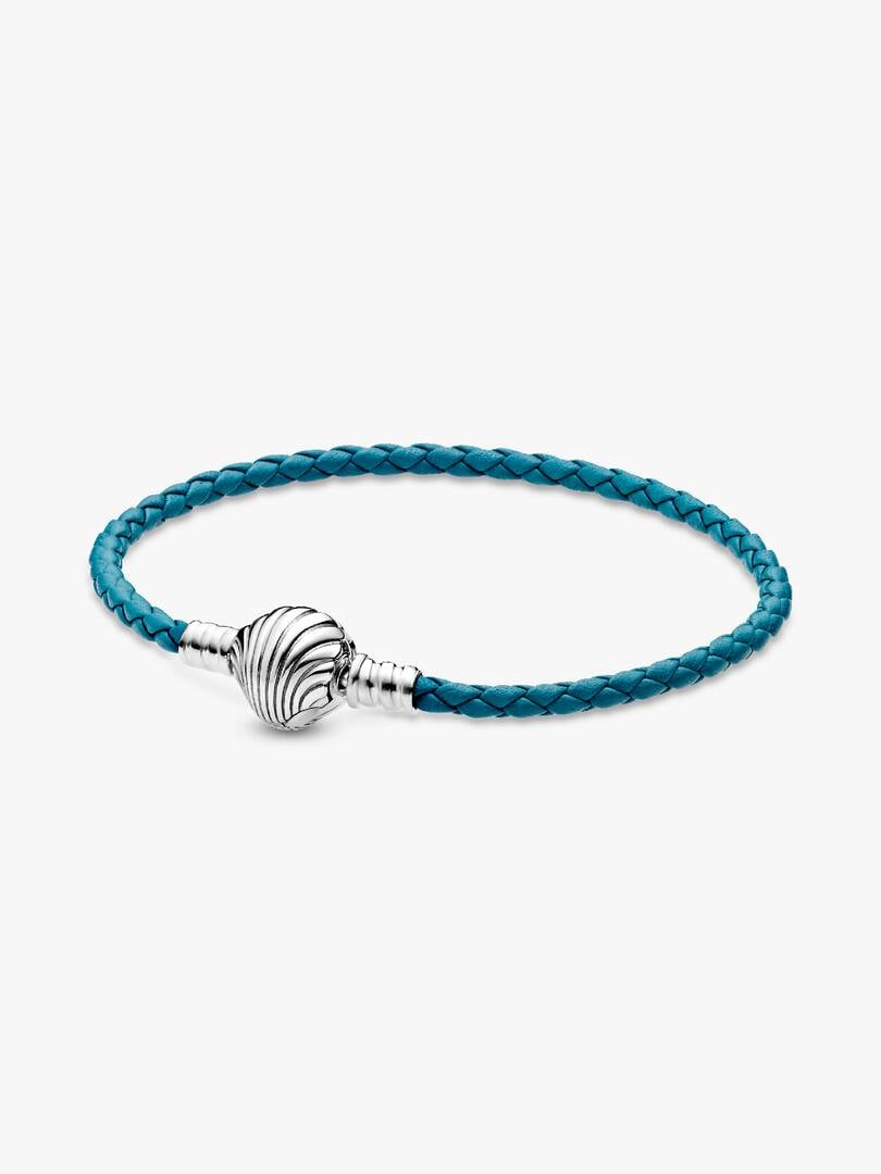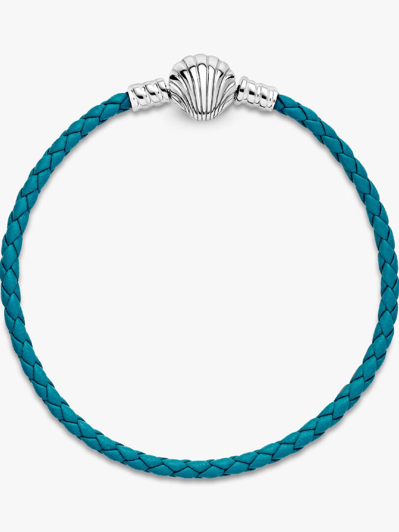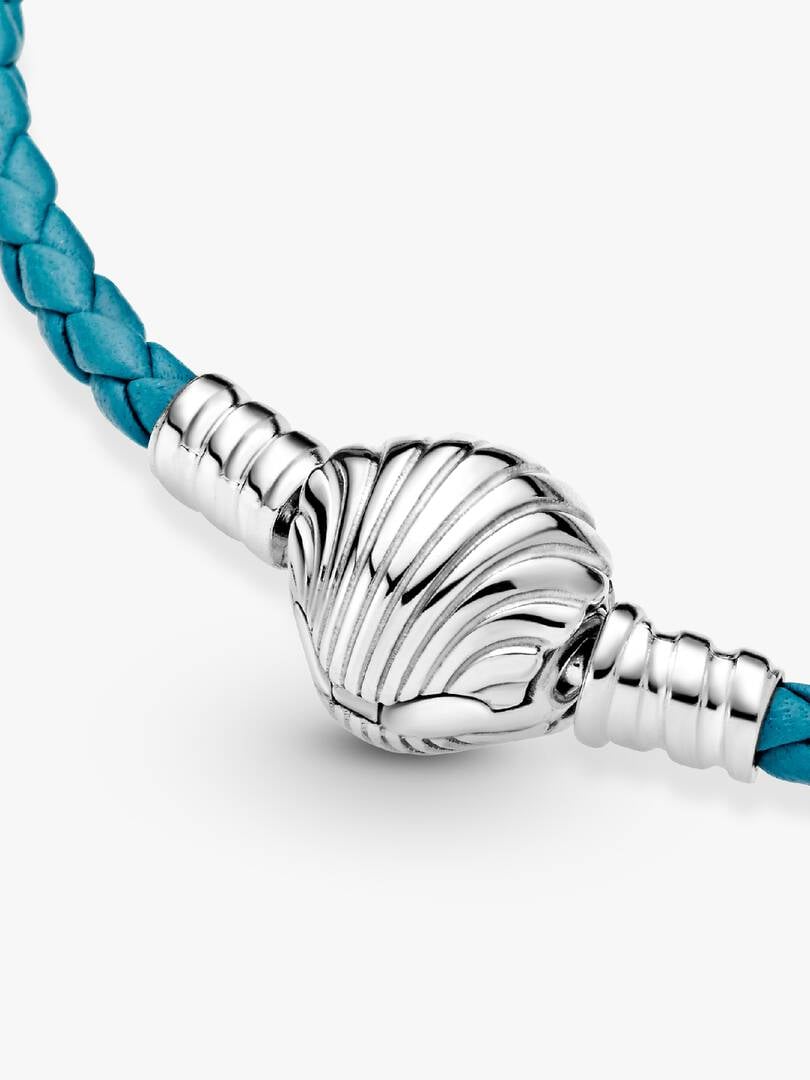 Add a pop of vibrant color to any of your outfits with the brand Moments Seashell Clasp Turquoise Braided Leather Bracelet. The turquoise leather’s intricate braid finishes in a sterling silver shell-shaped clasp that