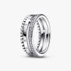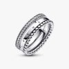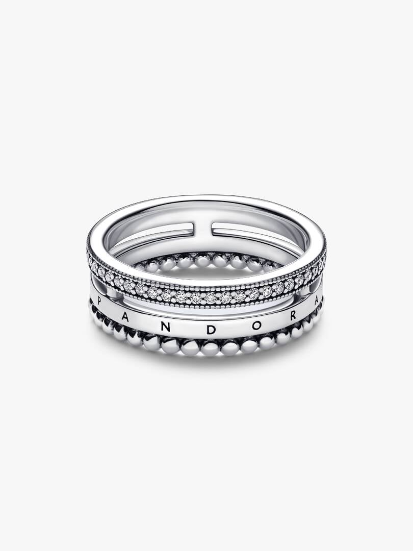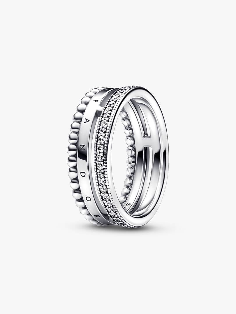 A sophisticated finishing touch to any outfit. Crafted in sterling silver, the brand Signature Logo Pavé & Beads Ring features a multi-textured look with contrasting bands of beads and pavé. The brand logo is inscrib