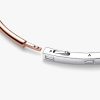 Make minimal stacking your mantra with the brand Signature Two-tone I-D Pavé Bangle. The minimalist bracelet is crafted from two metal finishes; sterling silver and a 14k rose gold-plated unique metal blend. The band’s