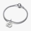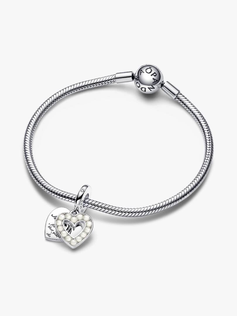 Pearlescent White Heart Double Dangle Charm | Sterling silver