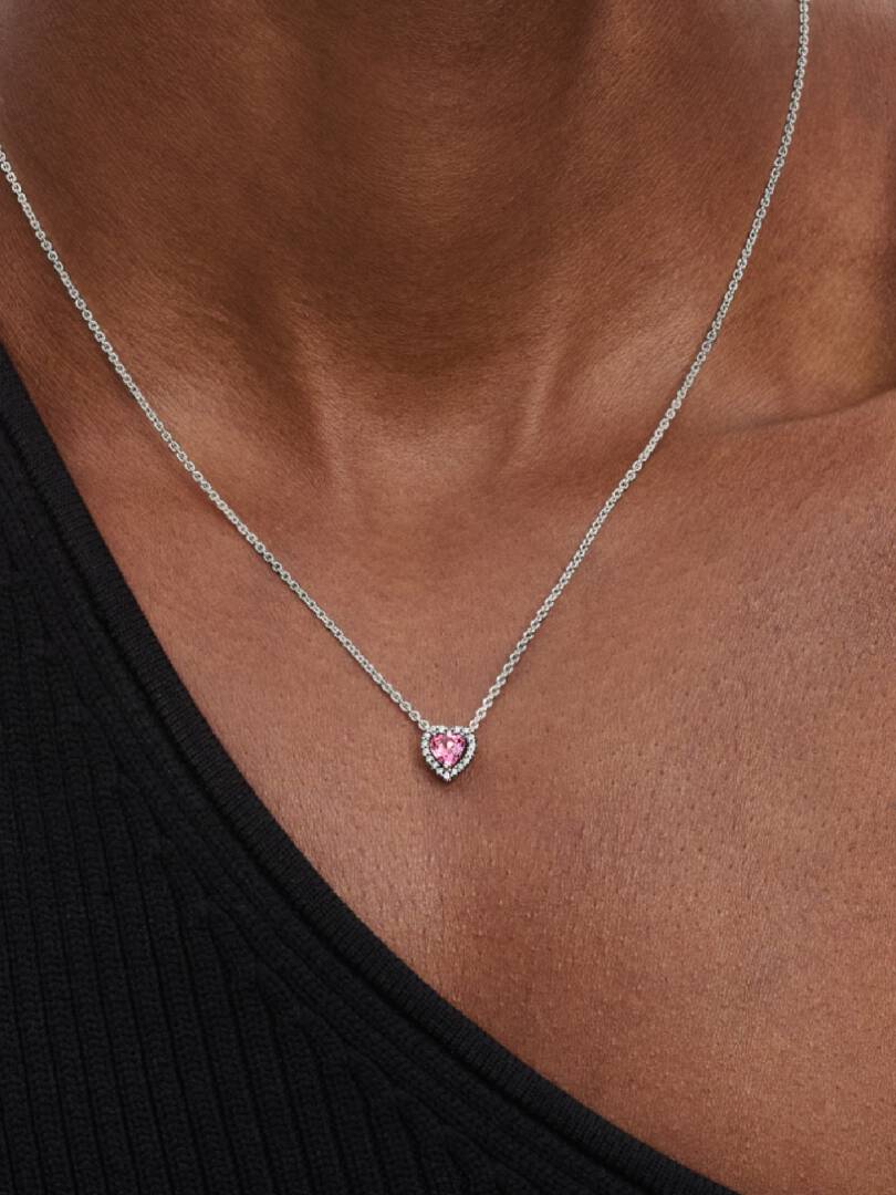 Pink Elevated Heart Necklace | Sterling silver