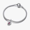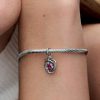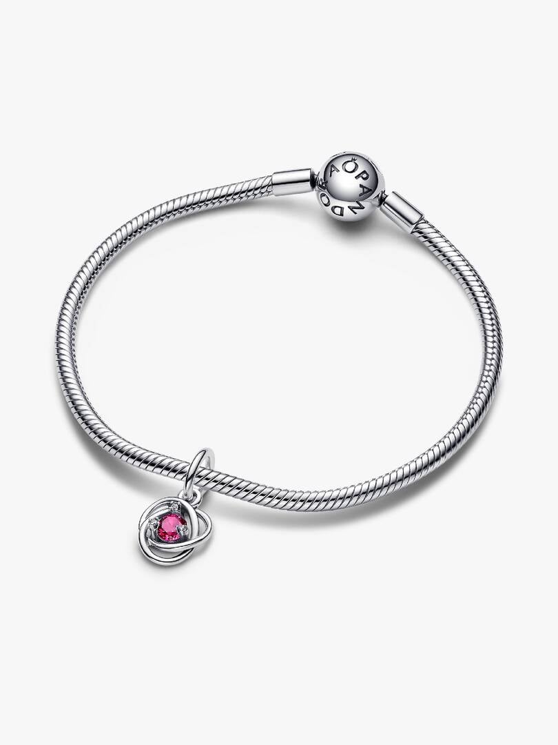 This intricate Pink Eternity Circle Dangle Charm is a must-have for any collection. Crafted in lustrous sterling silver, it features an openwork infinity braid decorated with a central pink man-made crystal, elegantly su