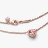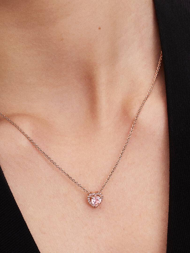 A shimmering pink heart stone, framed by sparkling pavé, sits at the center of this elegant necklace – perfect for adding a romantic and vibrant touch to any look.