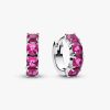 Add a touch of sparkle to your look with these delicate hoop earrings, featuring a row of phlox pink man-made crystals. Express yourself with this beautiful design.