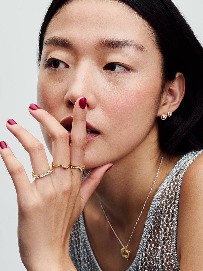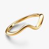 A new wave of stacking. Finished in 14k gold plating, our Polished Wave Ring curves to resemble the movement of a wave, with a smooth polished surface. Stack several 14k gold-plated rings together or combine with the pav