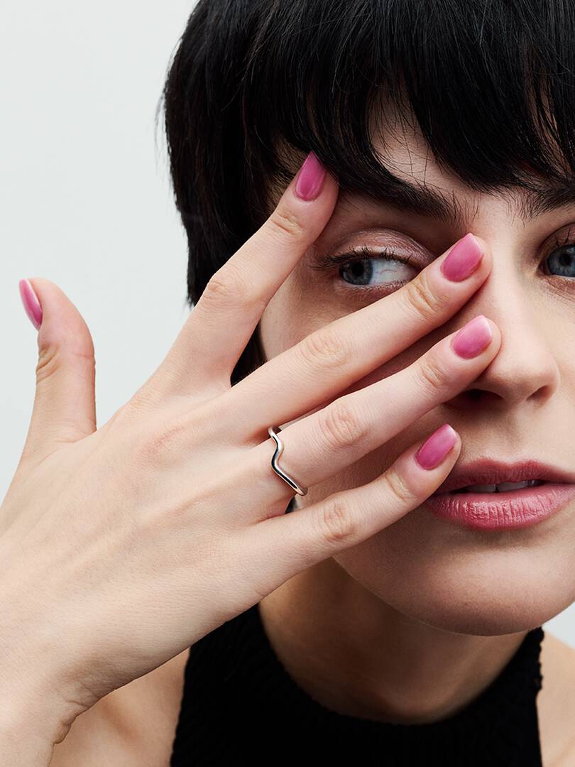 A new wave of stacking. Crafted from sterling silver, our Polished Wave Ring curves to resemble the movement of a wave, with a smooth polished surface. Stack several sterling silver rings together or combine with the pav