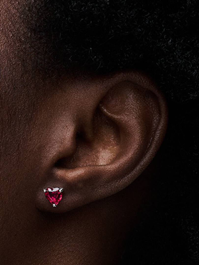 Turn up the romance with our Red Heart Stud Earrings. Heart-shaped faceted red man-made crystals sparkle in a sterling silver three-prong setting. Make a bold declaration of love and pair this set with other heart pieces