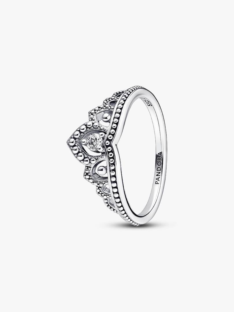 Here to give “crown jewels” a whole new meaning, our Regal Beaded Tiara Ring is crafted from sterling silver and features an ornate, arched design decorated with a brilliant-cut cubic zirconia stone. Textured microbeadin