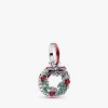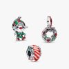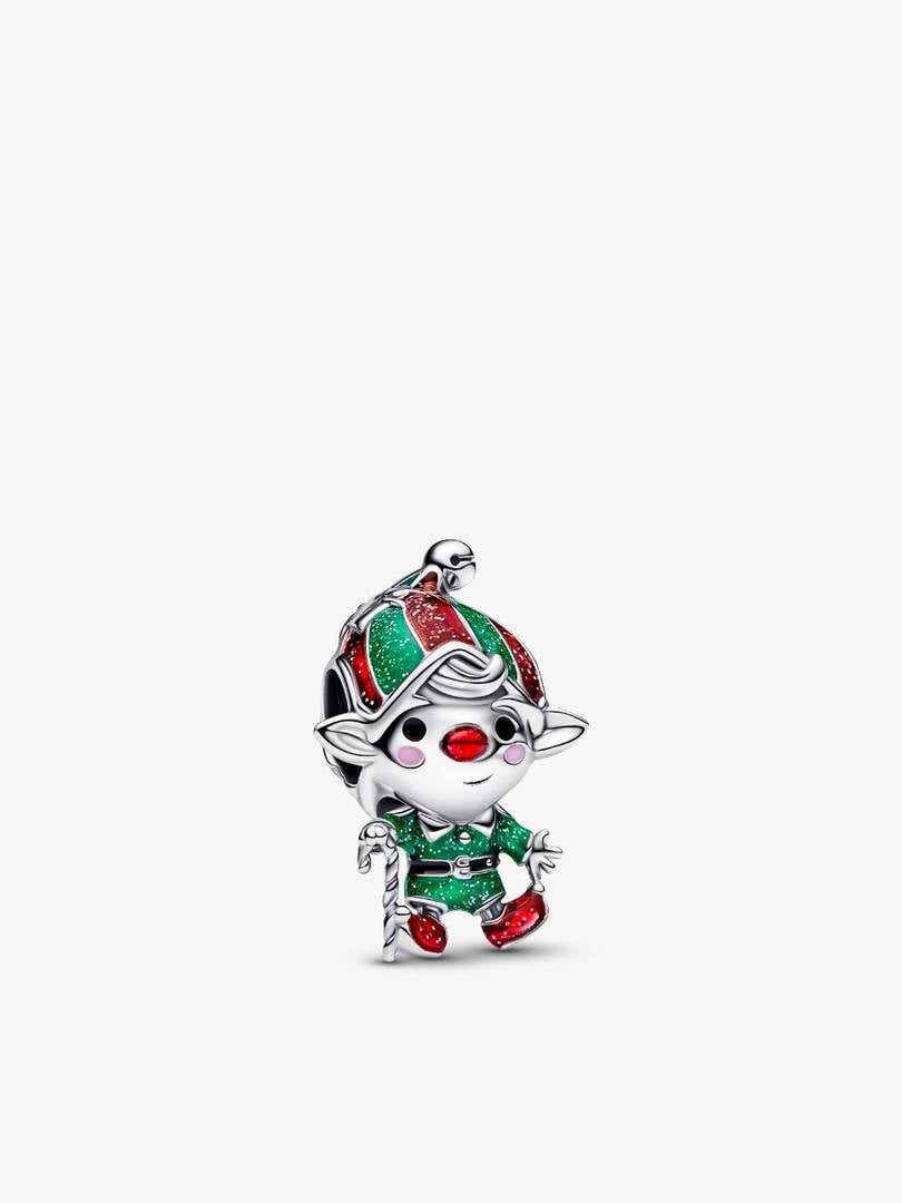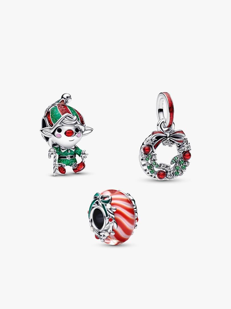 Channel the spirit of the season with a festive charm trio. This set features three sterling silver charms inspired by the holidays – a moveable elf, candy cane and holiday wreath dressed in green man-made crystals.