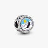 Adorned with glittering pave, this sterling silver button charm features a picturesque scene: a skier descending a snowy mountain, with beautiful blue and white enamel capturing the icy slopes and sunny sky. It’s a must-
