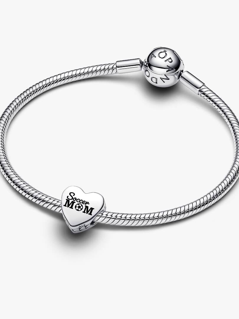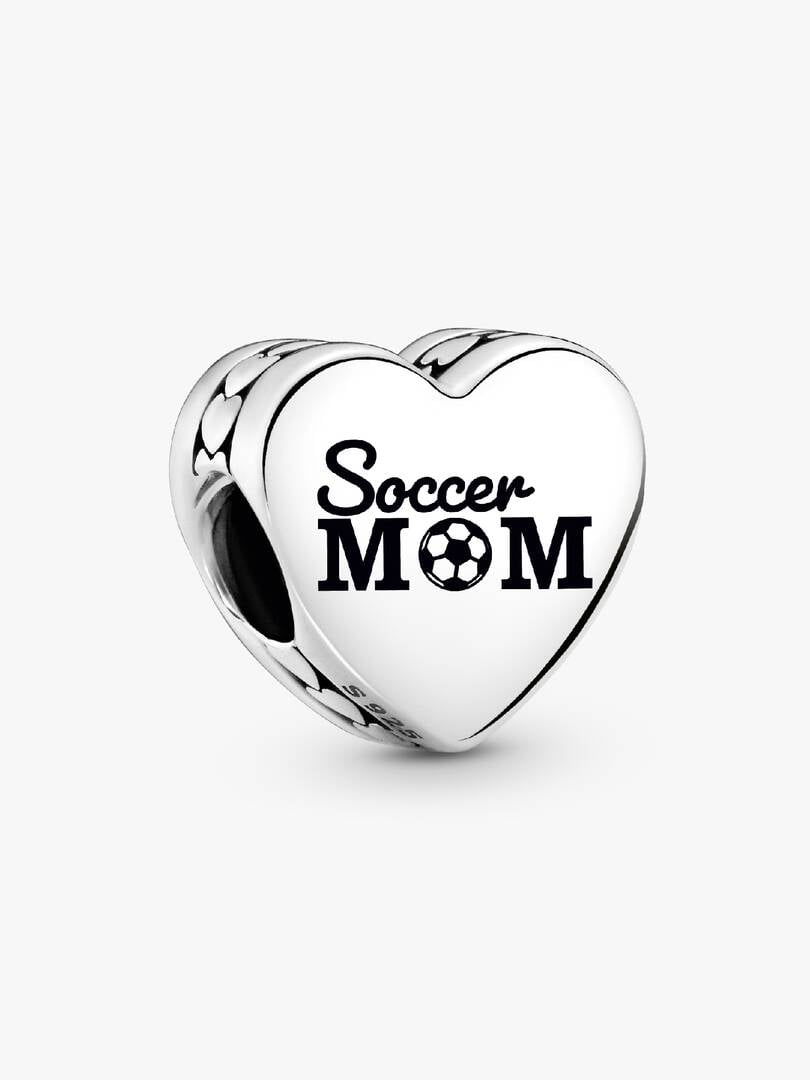 Celebrate your love for the game with this sterling silver Engravable Soccer Mom Heart Charm, featuring a row of polished hearts around the edges. Engraved with “Soccer Mom,” with a soccer ball as the “O,” this charm is