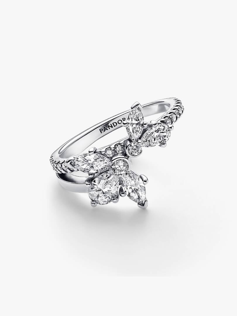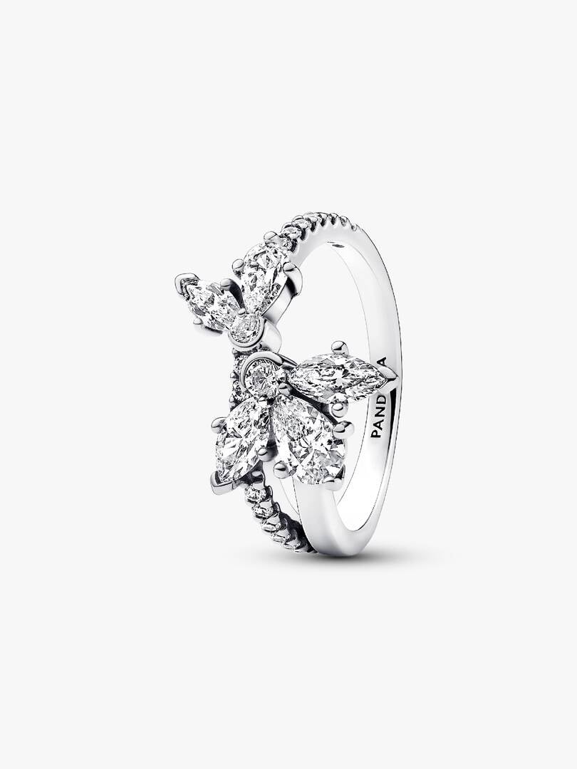 Pay tribute to natural beauty when you wear the Sparkling Asymmetrical Herbarium Cluster Ring. In a reflection of the organic symmetry of nature, this sterling silver ring features an asymmetrical band and flower motif.