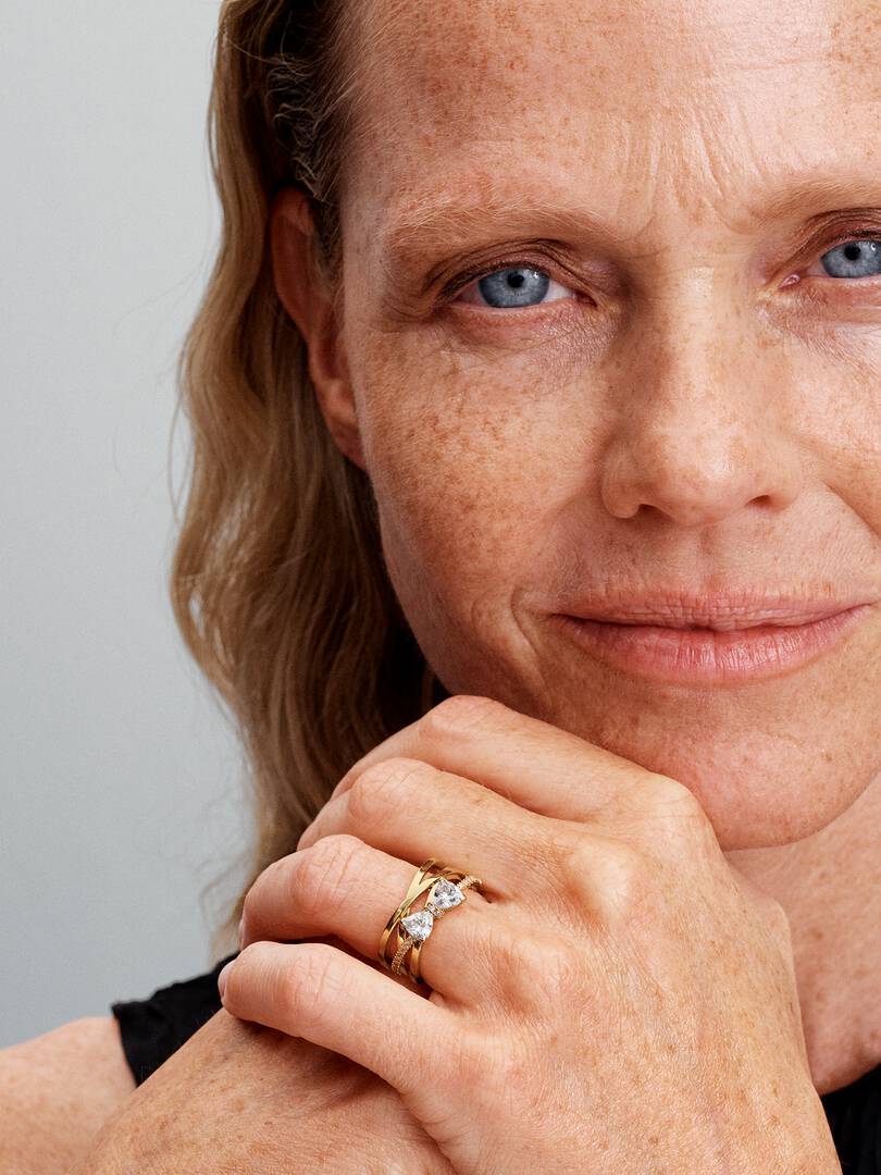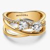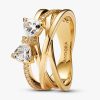 Sparkling Bow & Crossover Band Ring | Gold plated