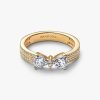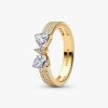This eye-catching ring features a contemporary bow motif surrounded by cubic zirconia, accented by a double row of pavé stones. Perfect for adding a touch of shine to any outfit.