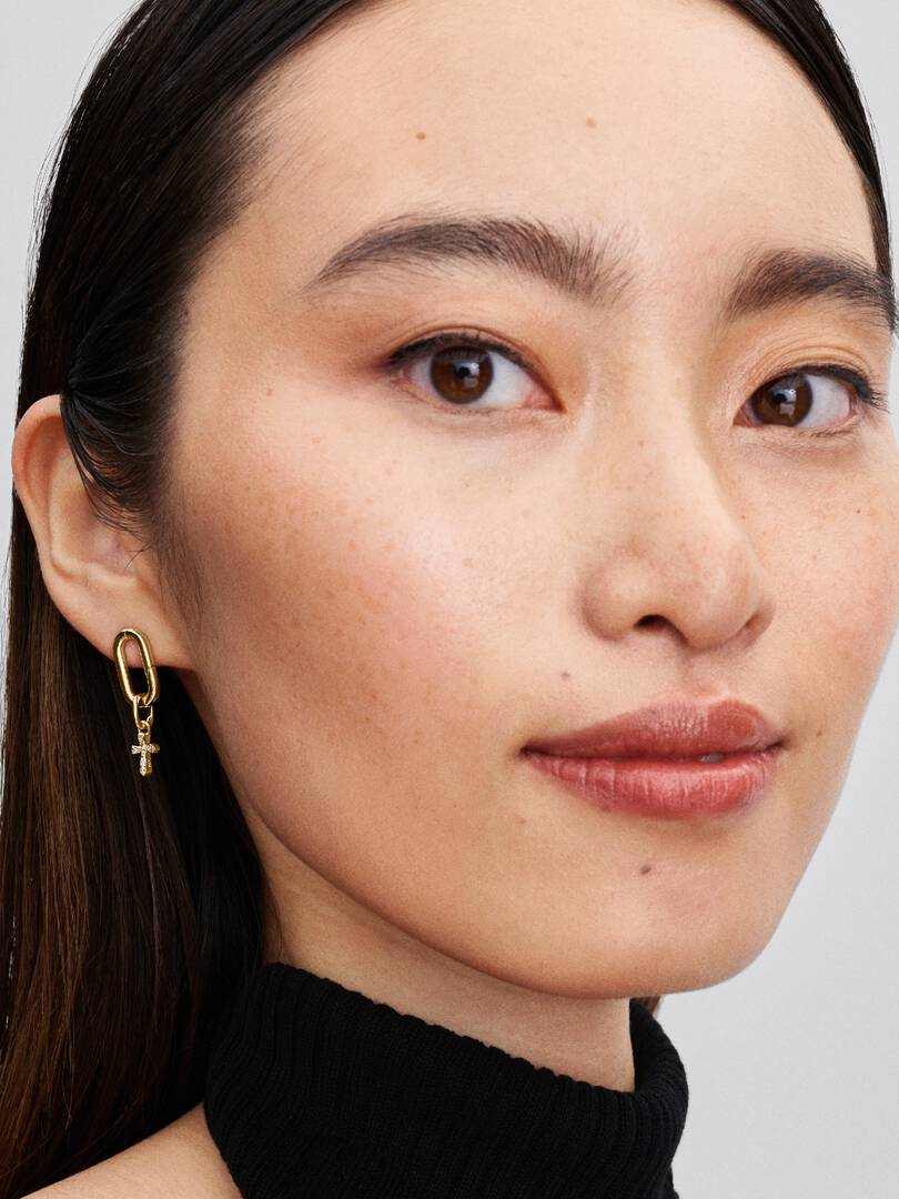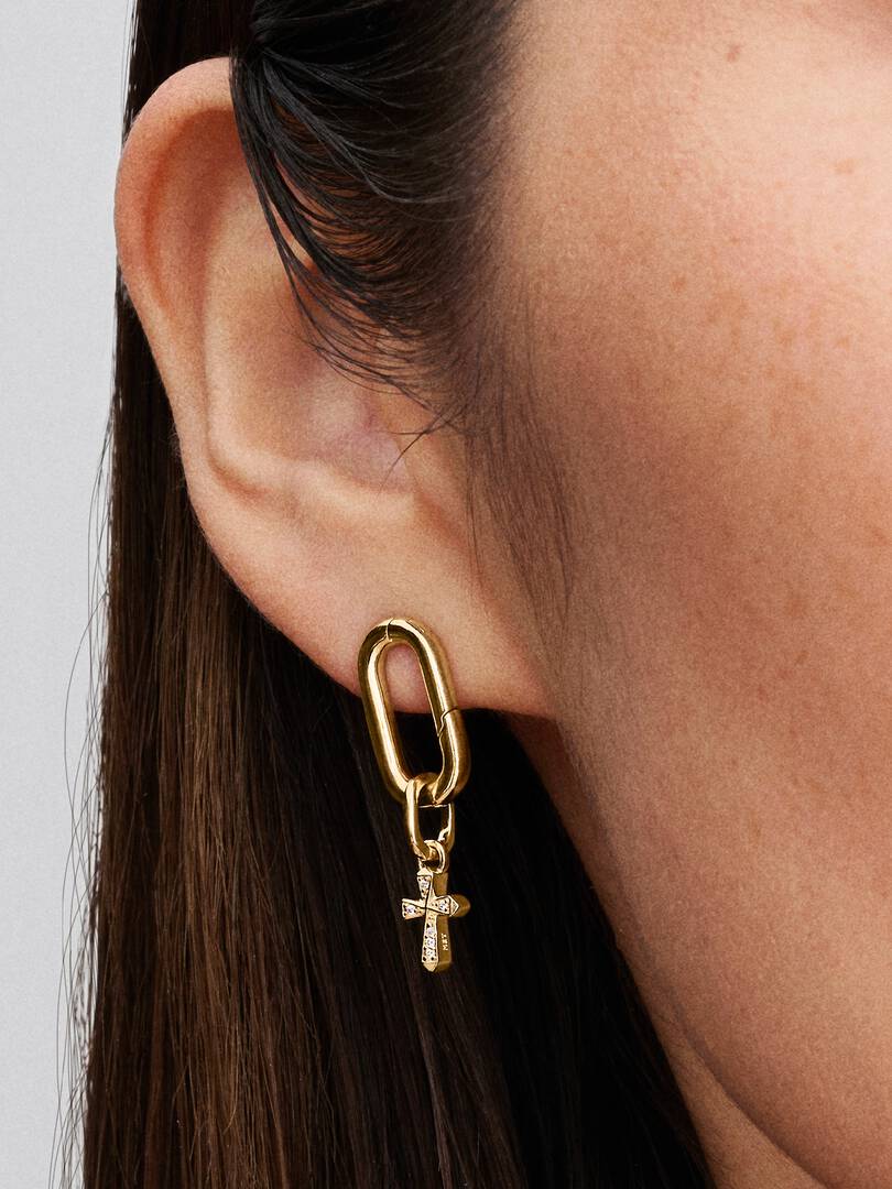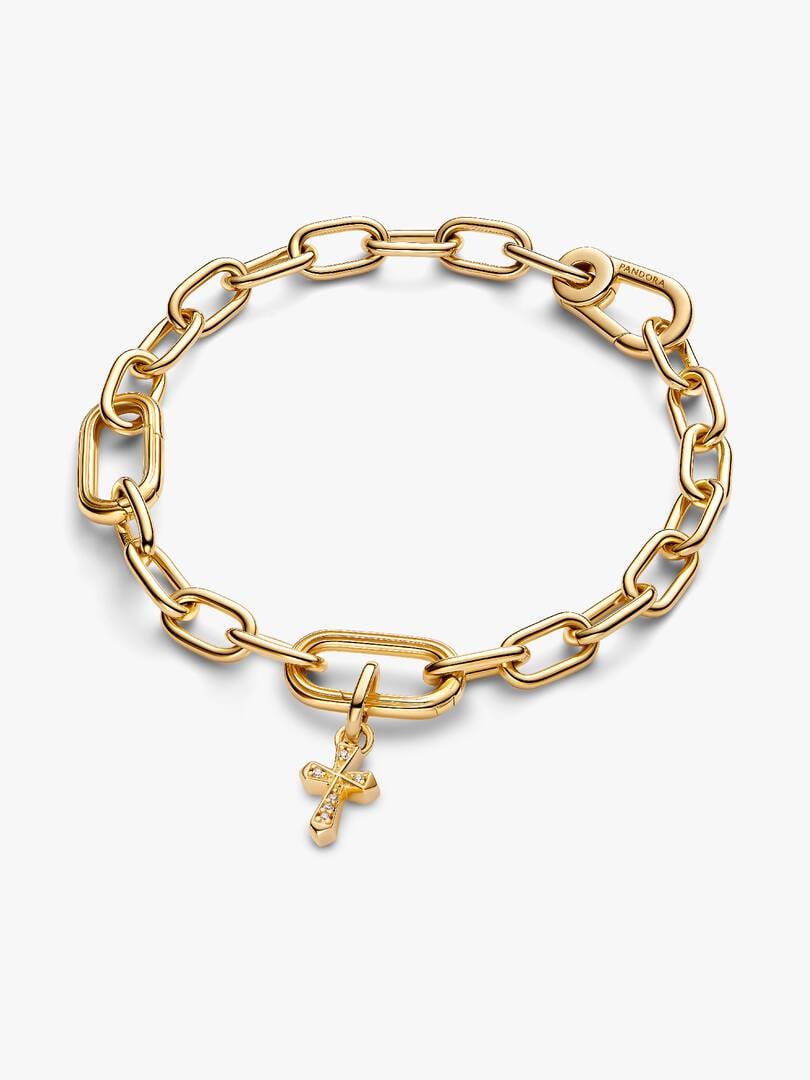 A modern take on a timeless symbol, this detailed cross charm features sparkling stones and raised beading, offering a blend of meaning and contemporary style.