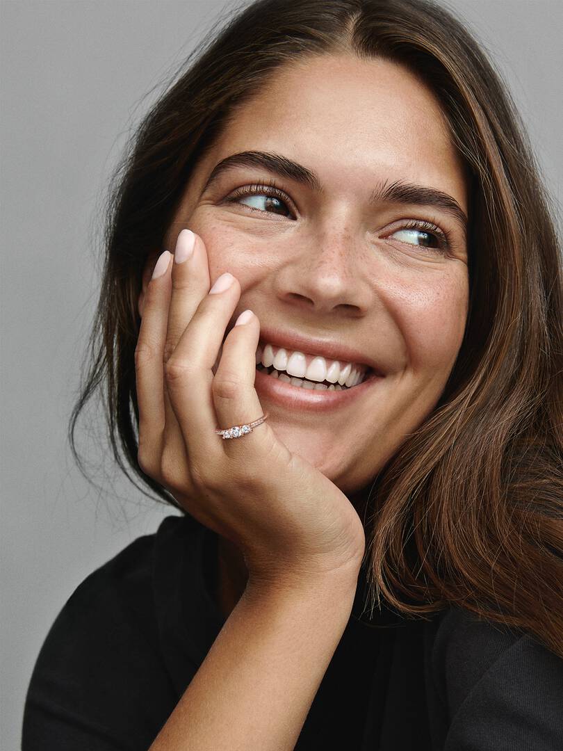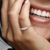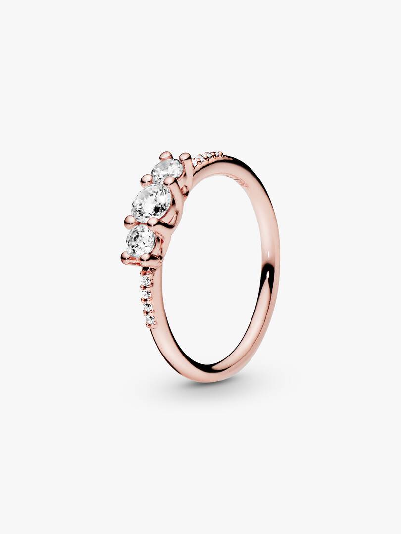 The slender band of this embellished Clear Three-Stone Ring makes it perfect for stacking with similar styles. Plated with 14k rose gold for a blush pink finish, it channels the look and feel of vintage styles. This clas