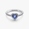 Make your heart beat faster. Featuring a blue, heart-shaped man-made crystal surrounded by a halo of pavé, wear this ring as a symbol of devotion and elegance, cut to perfection.