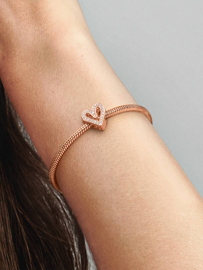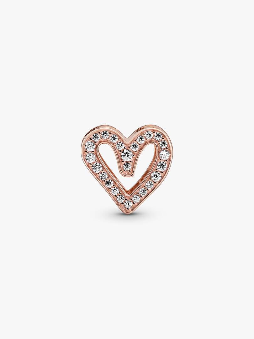 Sparkling Freehand Heart Charm | Pendant | Rose gold plated