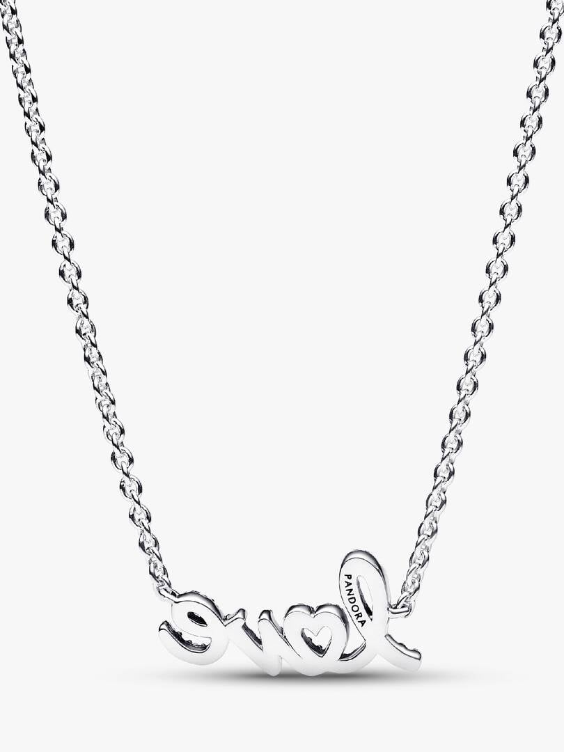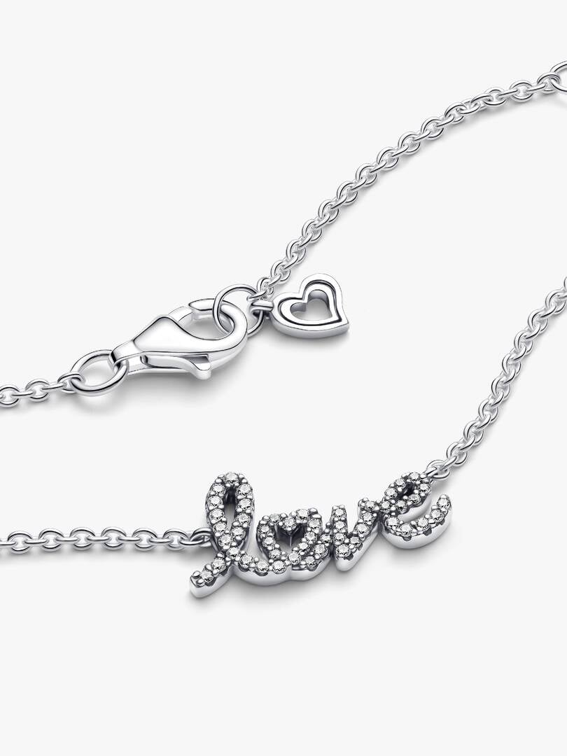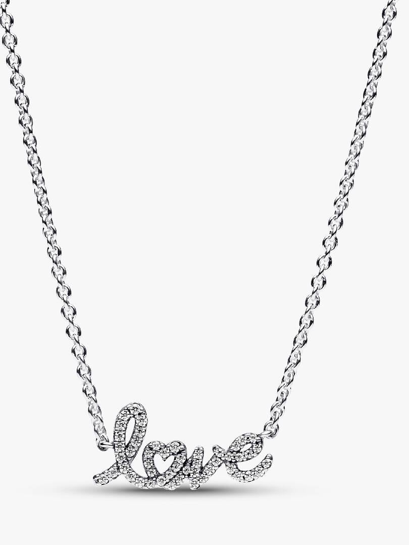 Spell out what’s in your heart with the Sparkling Handwritten Love Collier Necklace. This sterling silver necklace features a fixed pendant shaped like the word “love” in a handwritten style, adorned with sparkling cubic