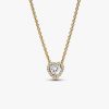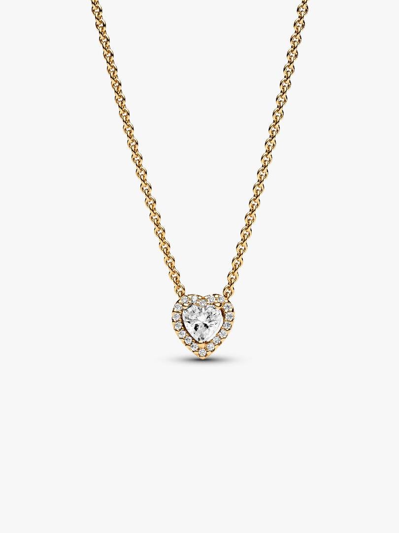 ded by a halo of clear cubic zirconia, the necklace also has a rectangular tag near the clasp with an engraved brand logo. Adjust the necklace length to suit your style and wear with other heart-shaped pieces for a look filled with love.