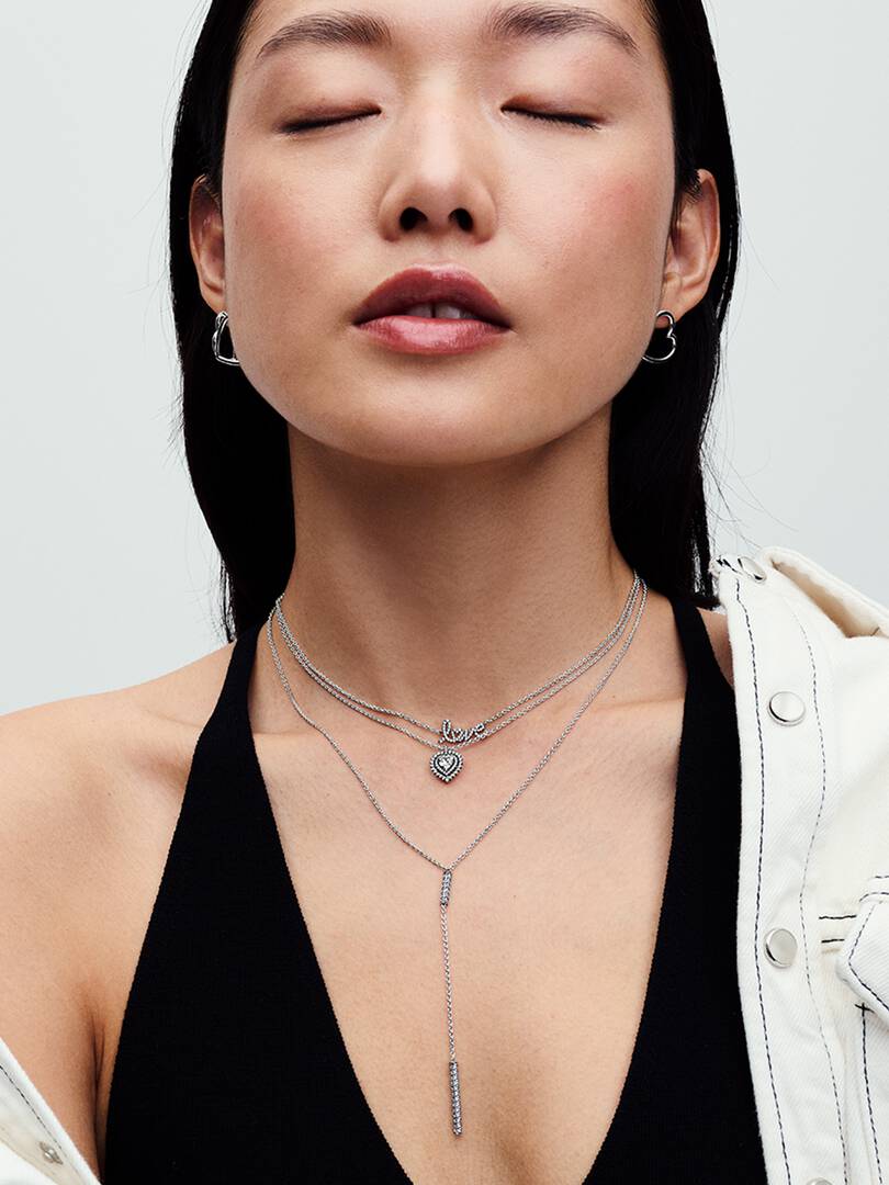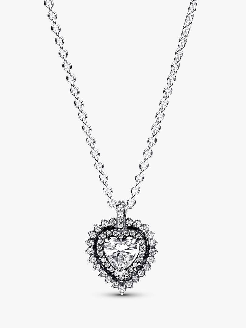 Sparkling Heart Halo Pendant Necklace | Sterling silver