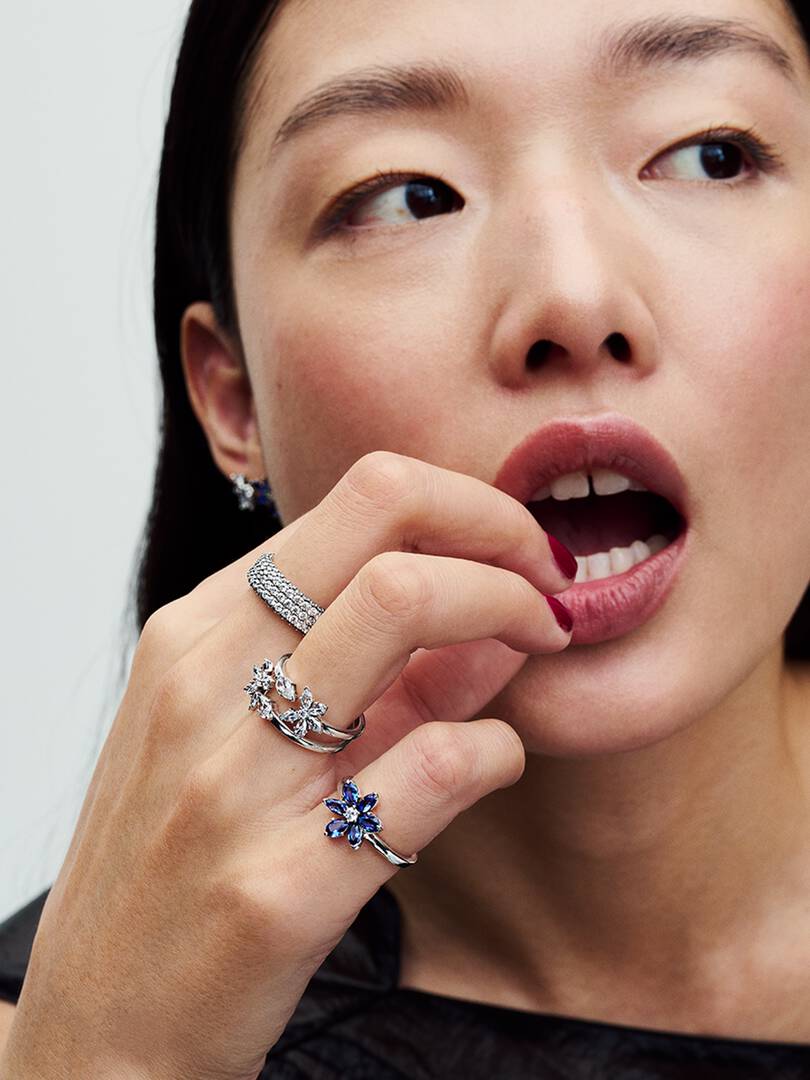 Sparkling Herbarium Cluster Open Ring | Sterling silver
