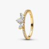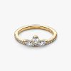 Celebrate the beauty of nature with this sparkling floral motif. Featuring a cluster of clear cubic zirconia stones and a 14k gold-plated band, it evokes the natural symmetry of the natural world.