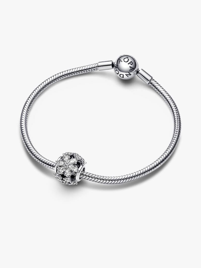 Bring the beauty of nature to your jewelry with the Sparkling Herbarium Cluster Round Charm. This sterling silver charm is composed of four clusters of clear cubic zirconia stones forming a spherical shape. The clusters