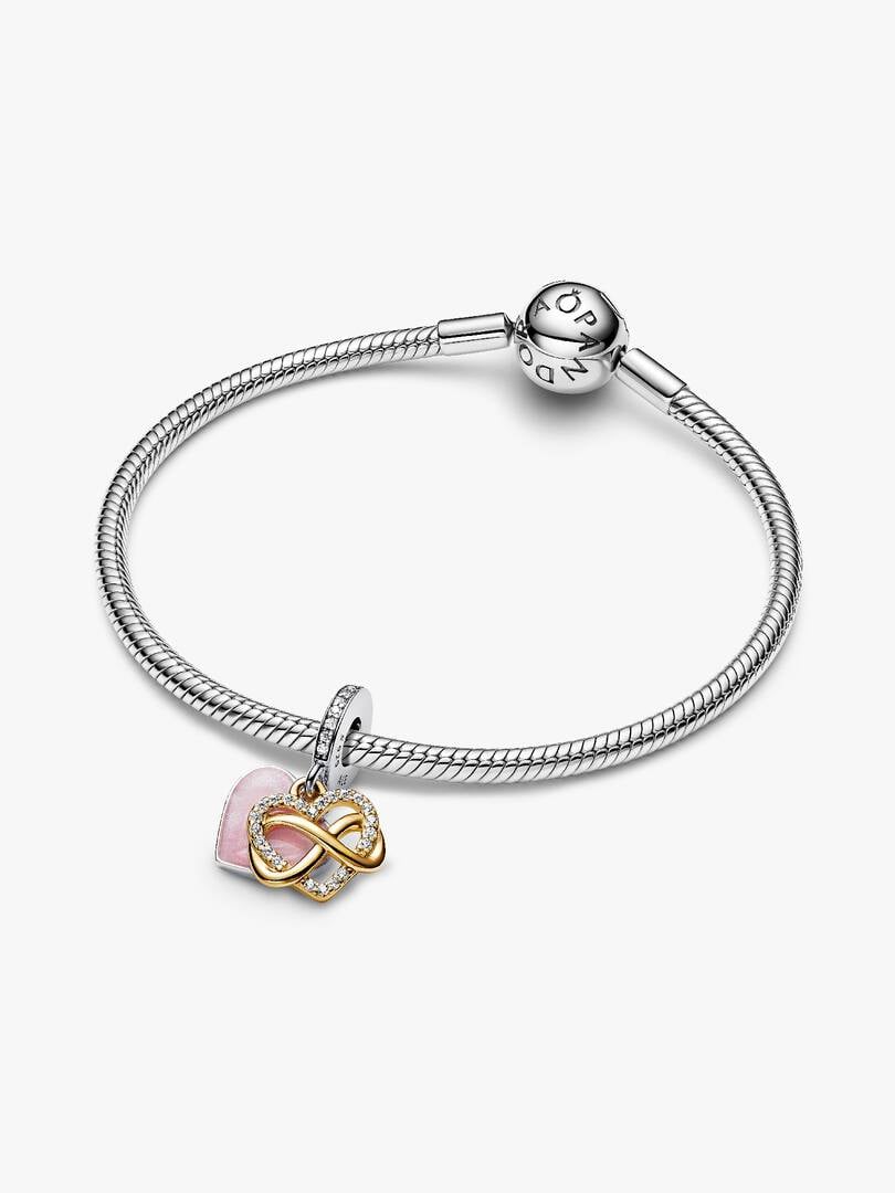 Sparkling Infinity Heart Dangle Charm | Pendant | Two-tone