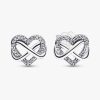 Representing the eternal love that binds family together, the Sparkling Infinity Heart Stud Earrings make a meaningful gift for your nearest and dearest. Each sterling silver earring features an openwork heart motif with