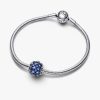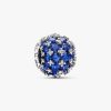 , progress and success, and resembles an infinity sign. This blue man-made crystal and clear cubic zirconia charm is a sparkling reminder of eternal possibility. Our classic Sparkling Pavé Round Charm has been updated in a bold, blue hue, making it the ultimate piece for a solo style statement, or as a partner to your everyday favorites.