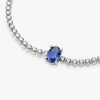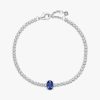Bring elegance to your outfit with the Sparkling Pavé Tennis Bracelet. Hand-finished in sterling silver, this tennis bracelet features a large central prong-set oval princess blue crystal framed by a row of clear cubic z