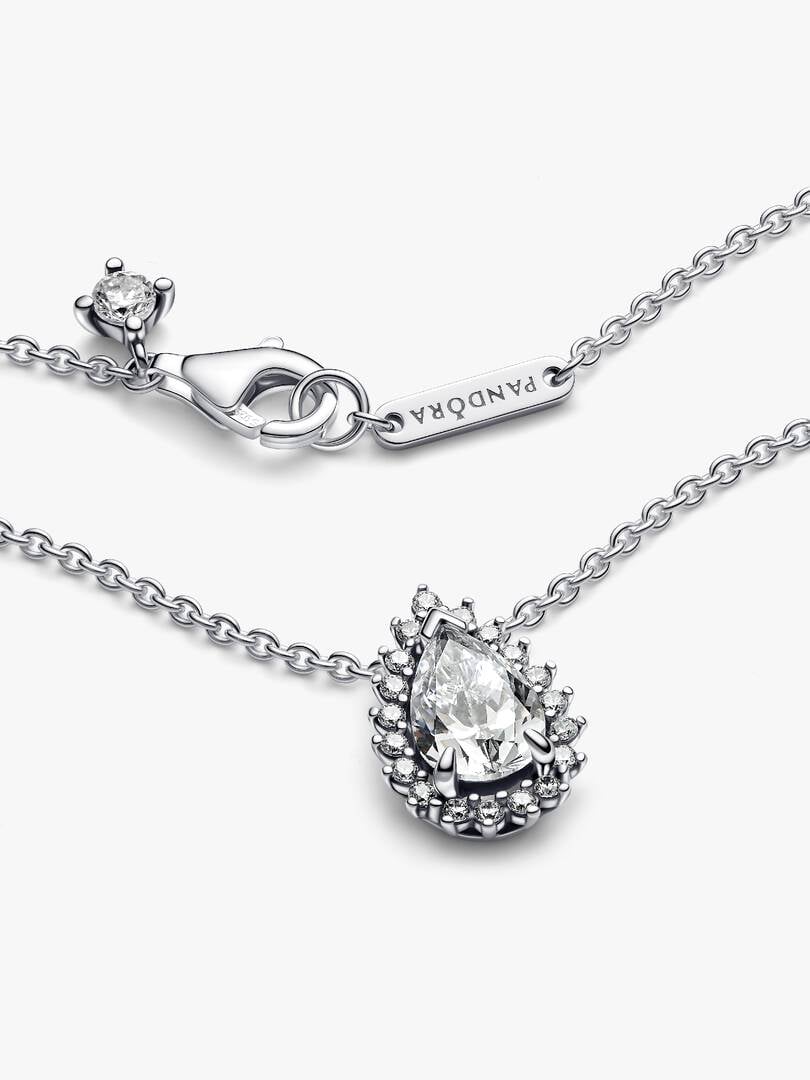 Sparkling Pear Halo Collier Necklace | Sterling silver