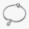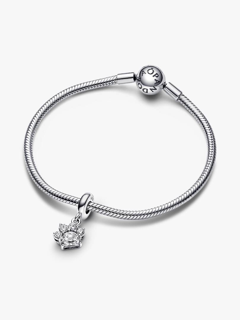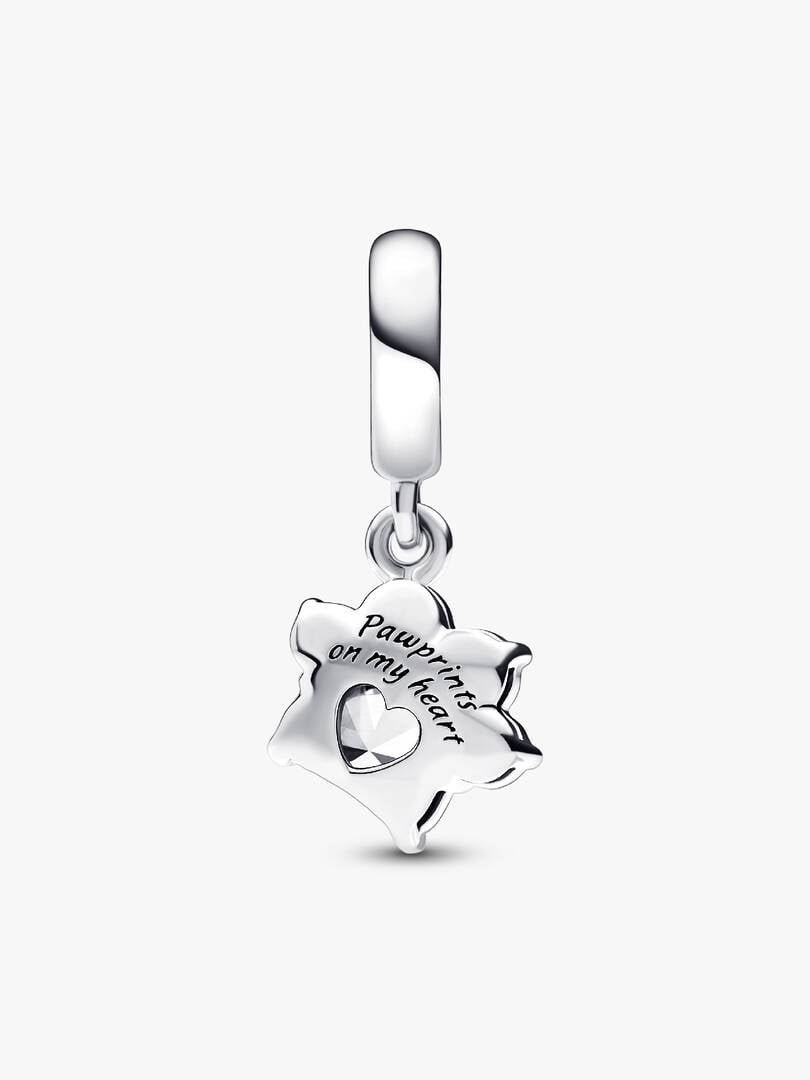 Elevate your love for your best friend with the Sparkling Pet Paw Print Dangle Charm. Cast in sterling silver, it features four sparkling stones as the toes and a specially crafted center stone that makes up the paw pad.