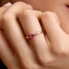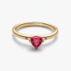 es a prong-set heart-cut red man-made crystal, framed by two flush-set cubic zirconia. An engraved “you & me” message on the shank adds an extra personal touch, making it the perfect gift for someone special.