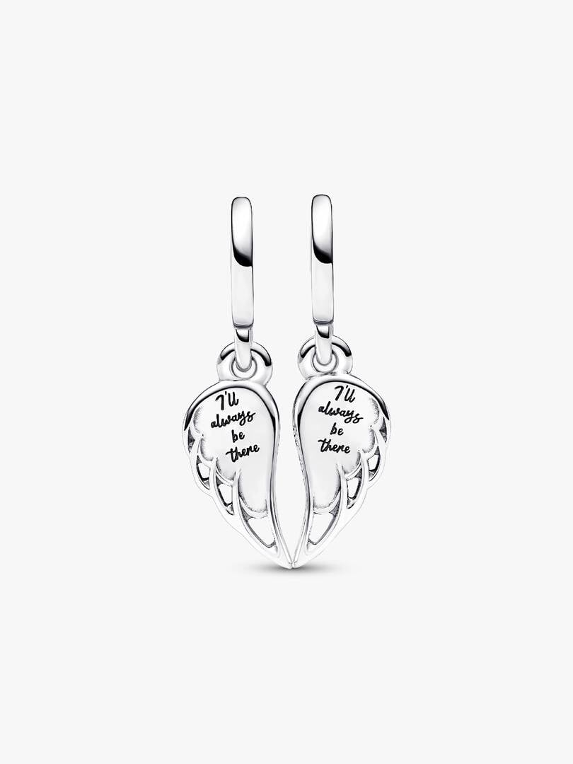 ade crystals, this angel wings charm features the engraved message “I’ll always be there” on the back of each wing. One for you and one for someone you love, wear these dangle charms to honor the ones who matter most.