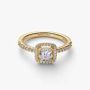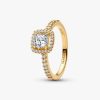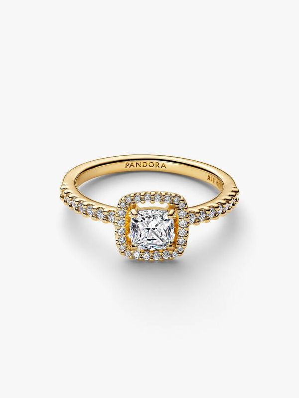 Add sparkle to your stack with this 14k gold-plated ring from brand Timeless, featuring square-cut clear cubic zirconia, a pavé halo and band. A modern twist on tradition, made to make you shine brighter in your everyd