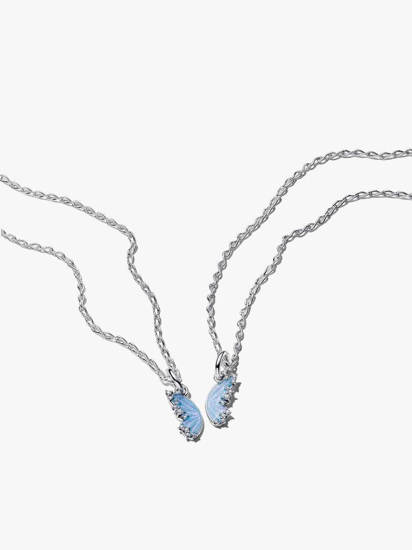 Fly high with this dreamy sterling silver set. Featuring a splittable butterfly dangle engraved with ‘TOGETHER ABOVE ALL’ and an infinity link chain, it’s a subtle hint to growth and transformation.