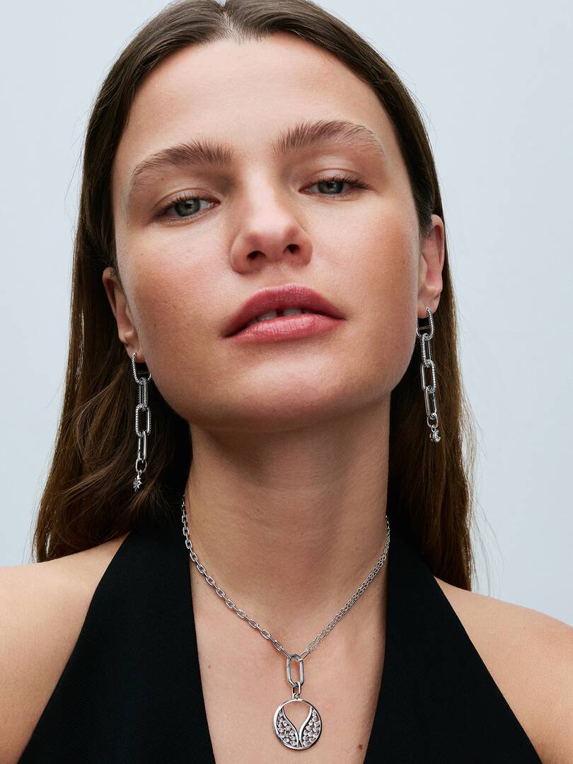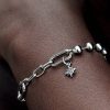 Bring a dash of cosmic energy to your look. This sterling silver eight-point star features five sparkling stones and microbeads on one side, and a microbead pattern on the other. A symbol of renewal, dreams and a guiding