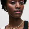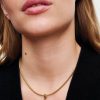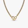 Update your collection. Hand-finished in 14k gold plating, this studded chain necklace features a flexible, textured chain that’s the definition of modernity. An infinity-detailed openable heart clasp adds a sweet touch.