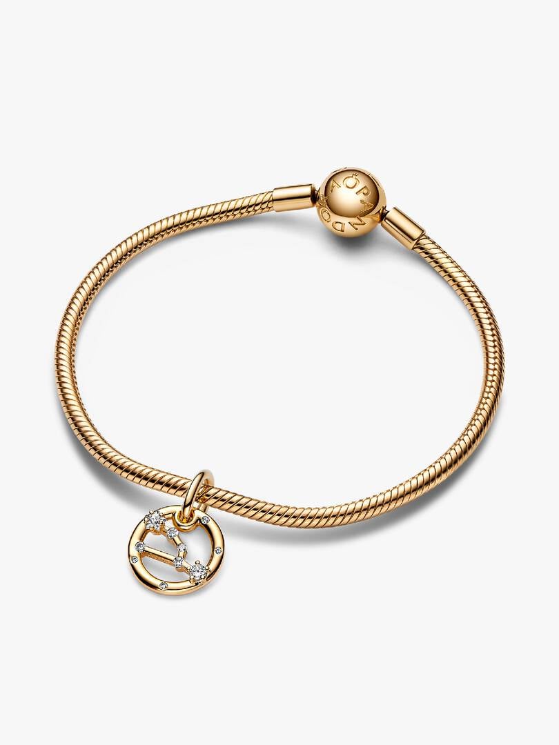 conia as well as the shape of the Taurus zodiac sign. The back side of the frame is engraved with “Taurus”. Loyal, trustworthy and strong-minded, the Taurus in your life can always be counted on to be good-natured, down-to-earth and tenacious. Beautifully paired with a matching 14k gold-plated brand Moments Snake Chain Bracelet. Wear it as a sign of your own sign’s strength or give it as a gift of appreciation to the Taurus in your life.