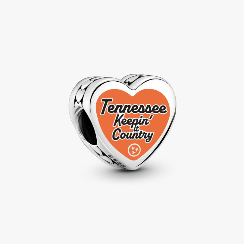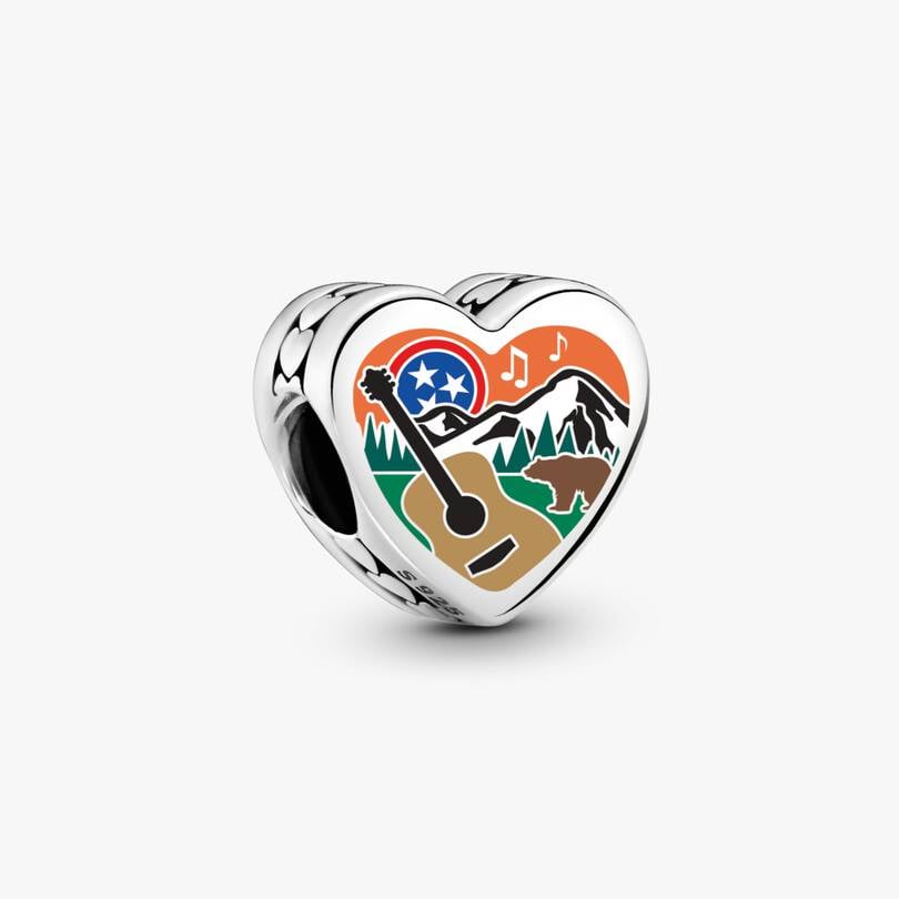 Bring home a piece of Tennessee with this heart-shaped charm in sterling silver. One side showcases a scenic Smoky Mountains view brought to life through glossy enamel in warm and earthy tones. It also features the insig